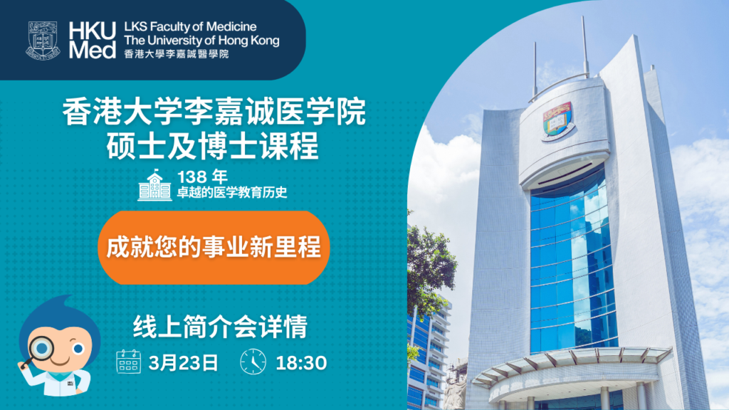 本次线上简介会是您全面了解香港大学李嘉诚医学院授课型硕士及博士课程的最佳平台。无论您是应届本科毕业生、在职医疗专业人士,还是希望跨专业进入医学领域的有志之士,都能在这里找到适合您的发展路径。